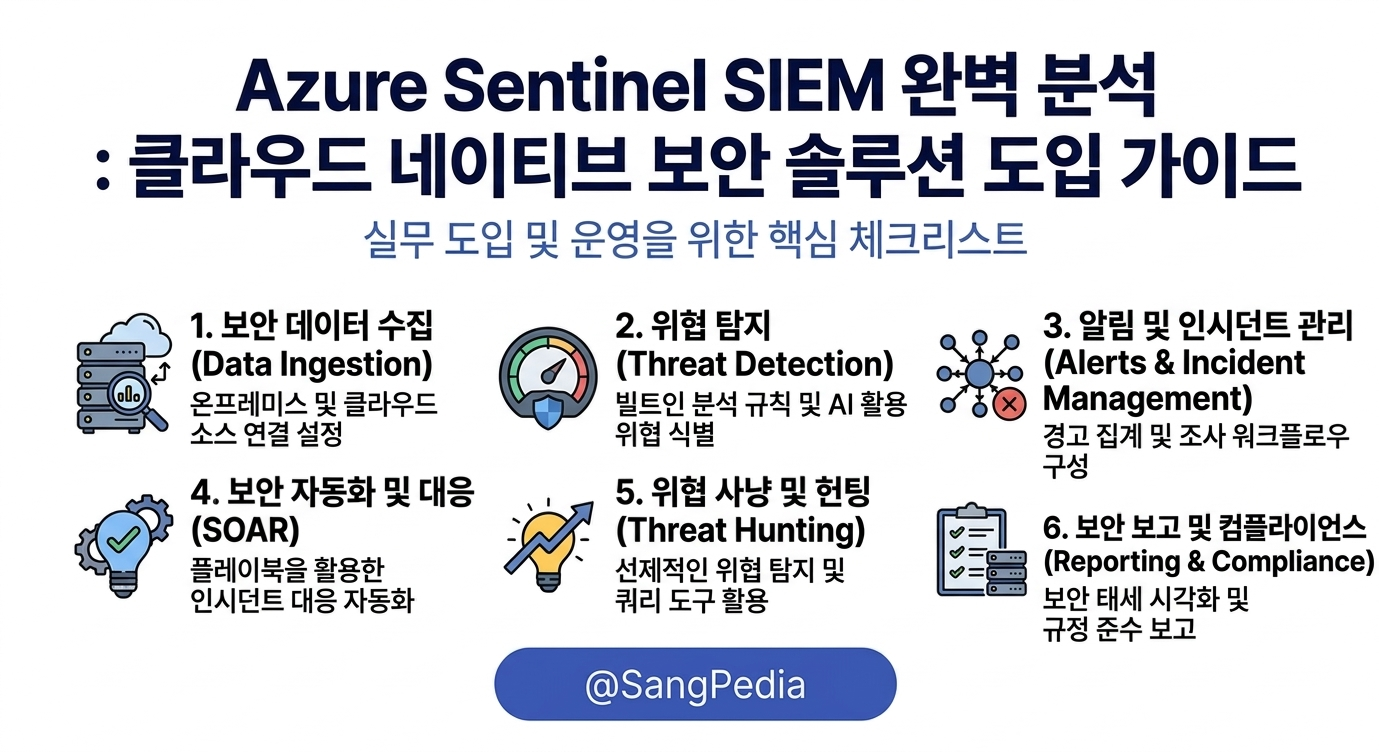 Azure Sentinel(Microsoft Sentinel)은 Microsoft에서 제공하는 클라우드 네이티브 SIEM(Security Information and Event Management) 솔루션입니다. 기존 SIEM 시스템의 복잡성과 비용 문제를 해결하고, 클라우드 환경에 최적화된 확장성, AI 기반 위협 탐지, 자동화된 대응 기능을 제공합니다. 이 글에서는 Azure Sentinel의 주요 기능, 아키텍처, 사용 사례를 살펴보고, 도입 시 고려 사항과 함께 기업 규모별 선택 가이드를 제시합니다. Azure Sentinel을 통해 조직의 보안 역량을 강화하고 싶다면, 이 글이 훌륭한 출발점이 될 것입니다.